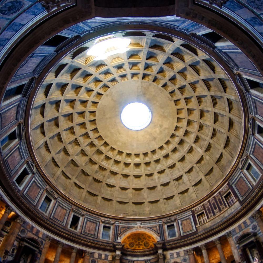 Originalmente construído por Agripa e reconstruído sob o Imperador Adriano, a vasta rotunda e o óculo aberto do Panteão simbolizam a conexão entre o divino e o mundo mortal. A luz do sol que entrava pelo óculo era vista como um toque literal do céu, iluminando um espaço uma vez preenchido com estátuas dos deuses mais poderosos de Roma.